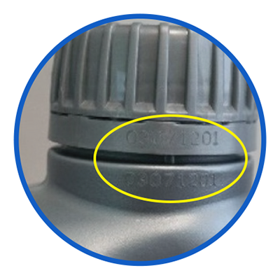 Botol silver dan merah Pertamina desain ulir : terdapat 8 digit nomor batch