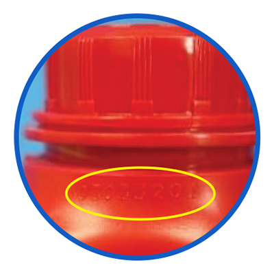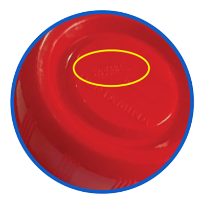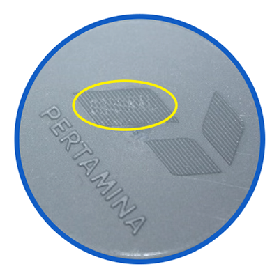 Botol merah Pertamina desain security : terdapat 8 digit nomor batch dibagian