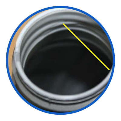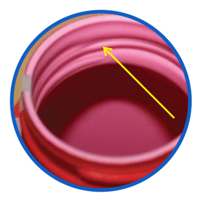 dibagian tutup botol dan leher botol, dengan posisi yang lurus, tegak, dan